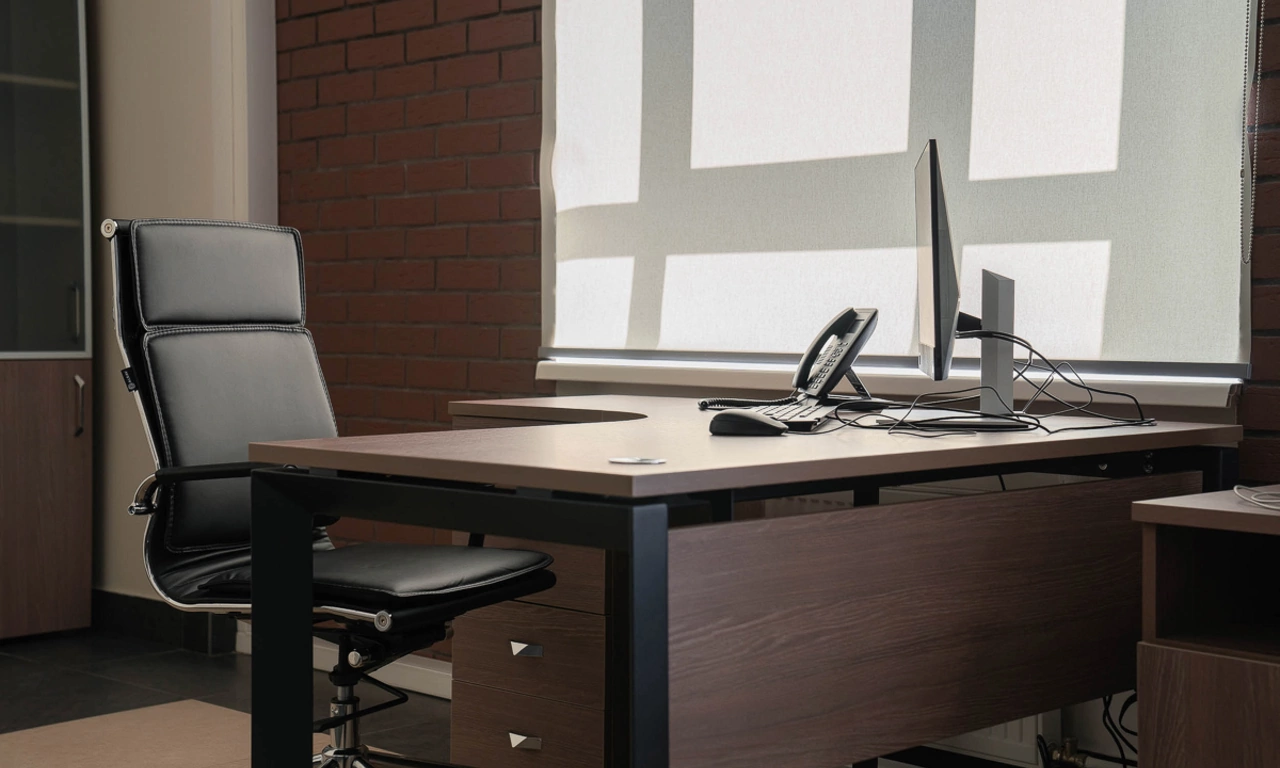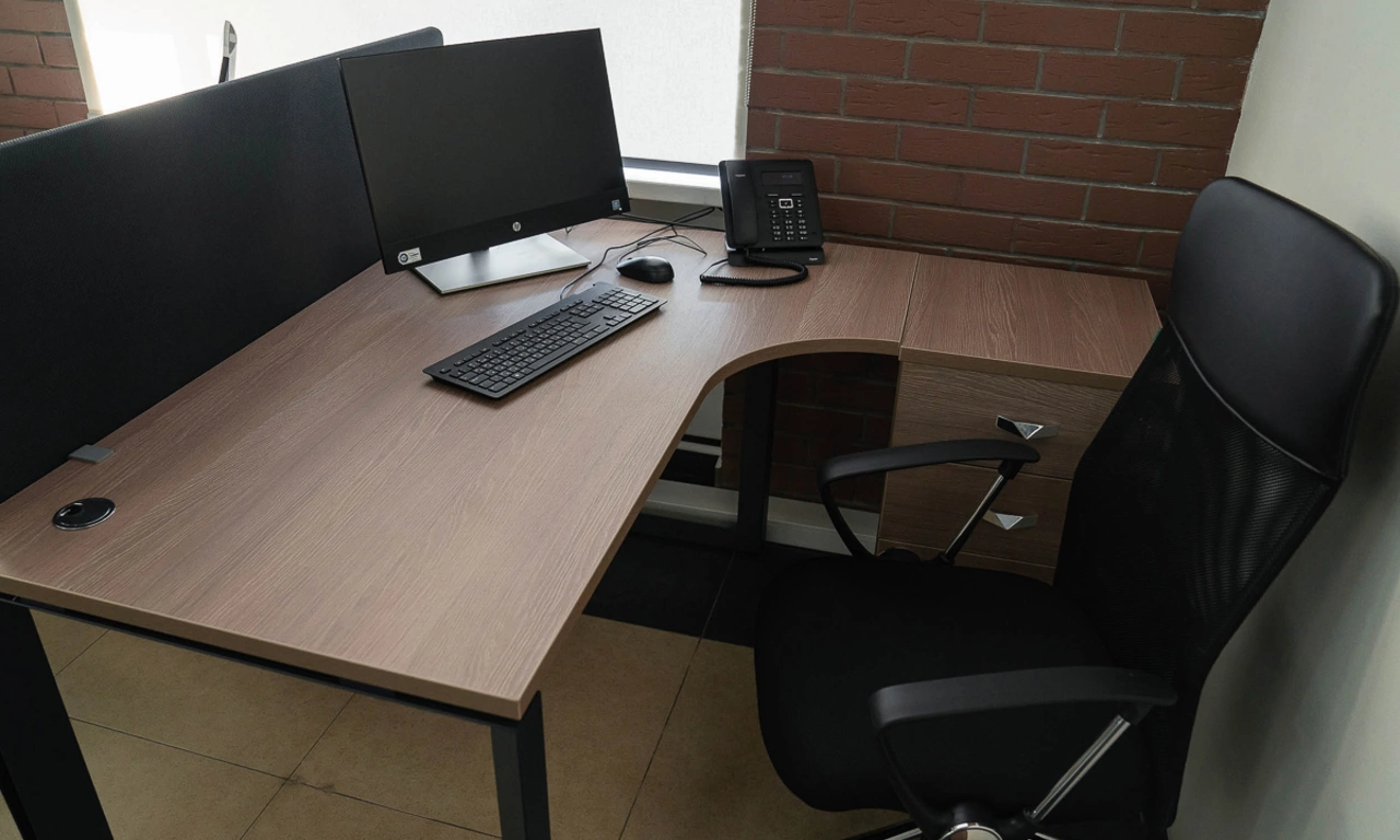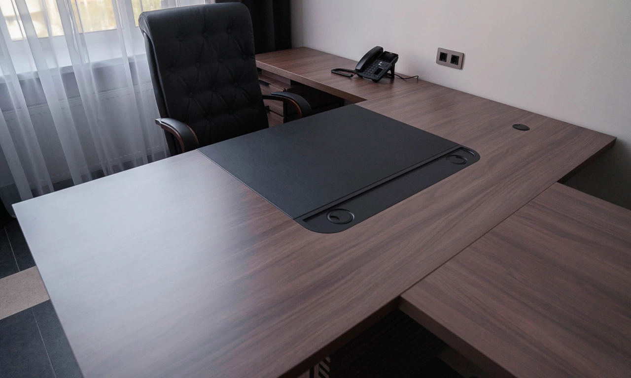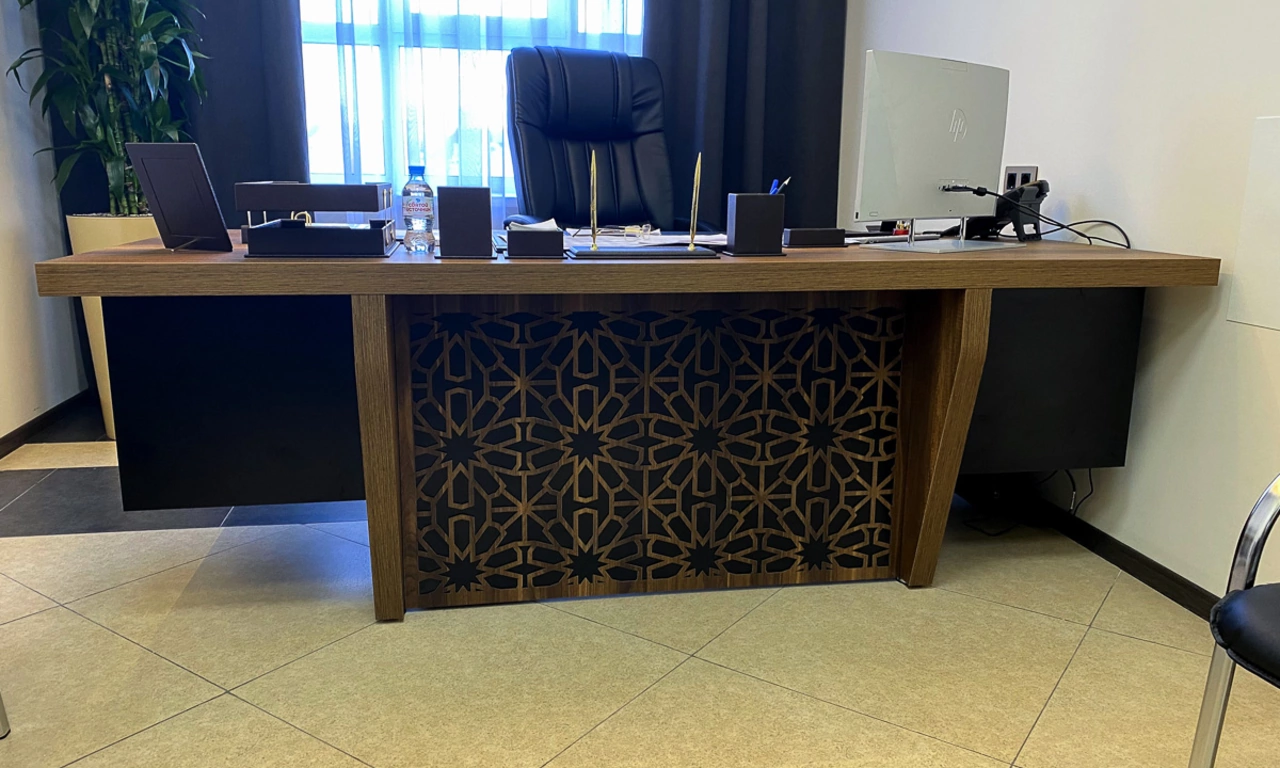Для более консервативного коллеги из соседнего кабинета отлично подошёл тот же Time.S, но в строгом оттенке дерева "палдао" в паре с классическим креслом Royal.