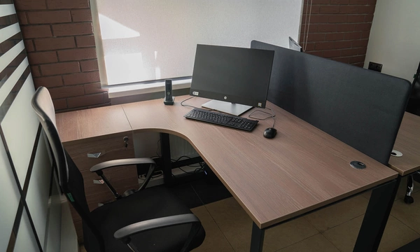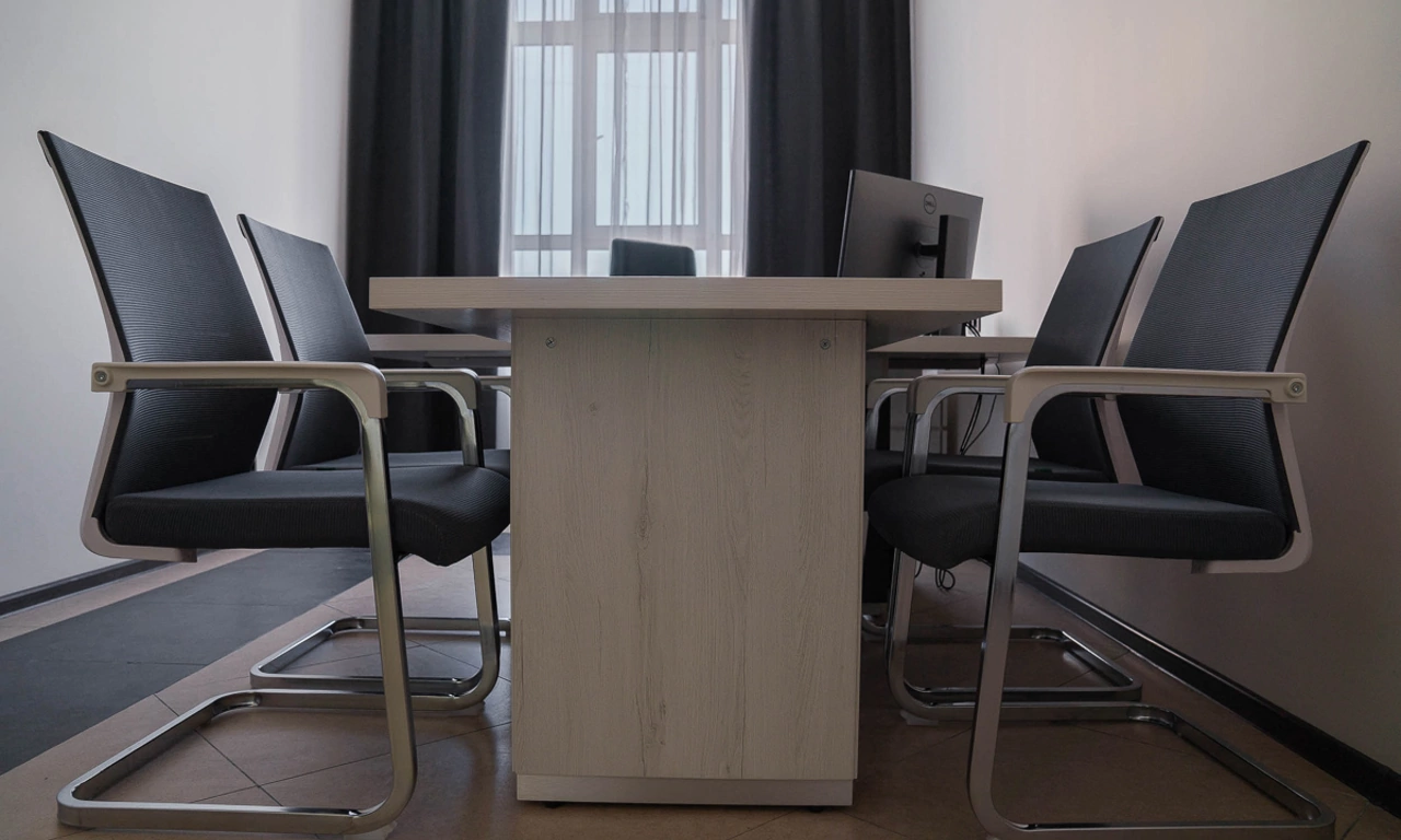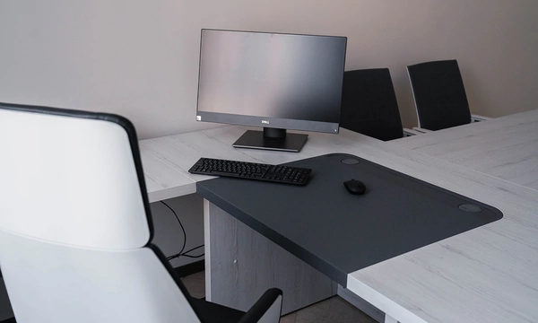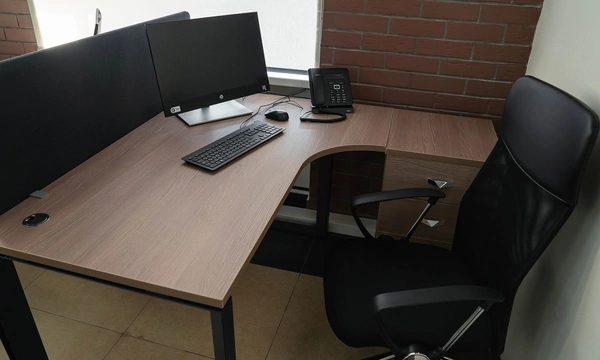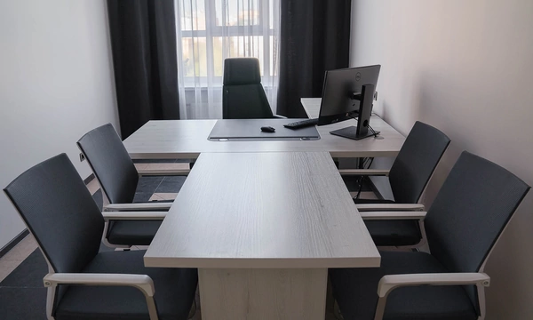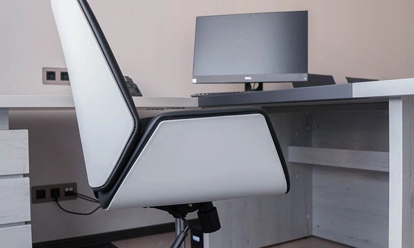 Сроки на подготовку нового офиса были сжатые, поэтому выбор заказчика сужался только теми коллекциями, которые было возможно поставить максимально оперативно. Для персонала была выбран наш хит продаж - Onix на металлических опорах в цвете антрацит, а под цвет опор подобраны классные чёрные текстильные перегородки. На креслах для сотрудников решили не экономить, каждый сотрудник получил кресло руководителя 8074 с дышащей сетчатой спинкой и подголовником из кожи или полностью кожаное кресло 6003-1s на выбор.