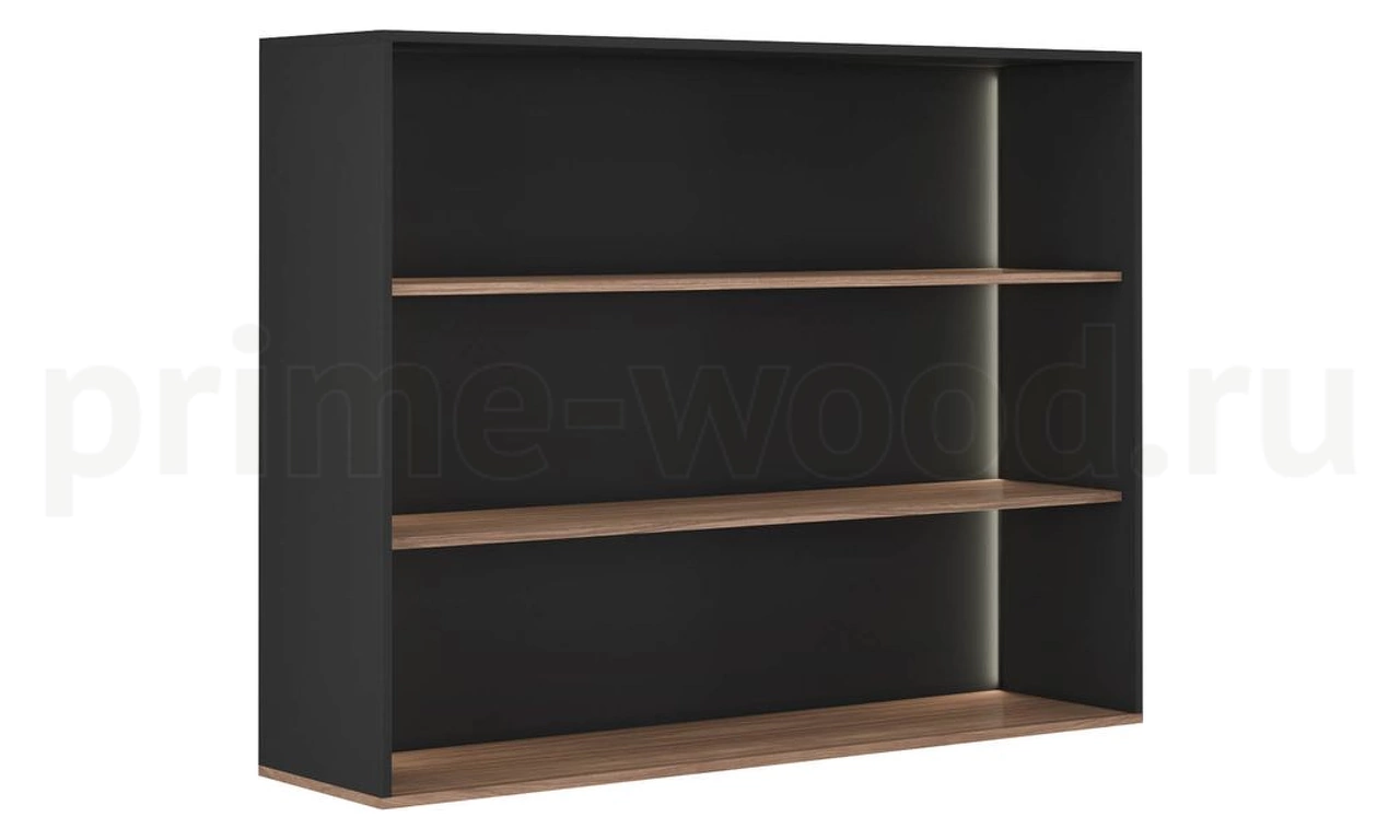Стеллаж со светодиодной подсветкой, каркас - из МДФ в тёмно-сером цвете TA15, полки шпонированные.