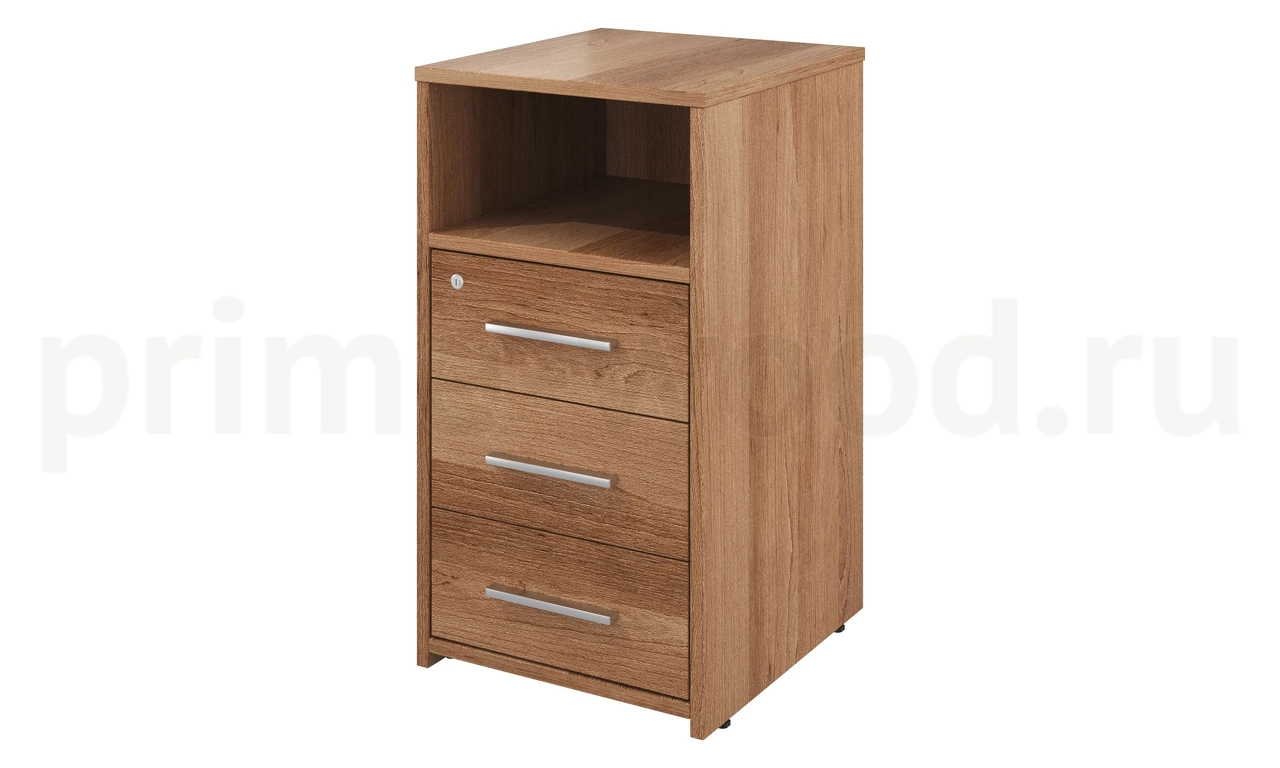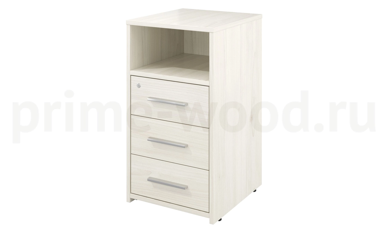 Каркасы ящиков: столярный ящик, дно ящиков: ХДФ 3,2 мм., направляющие роликовые: металл, регулировка по высоте (тумба приставная): да, замок (верхний ящик): да.